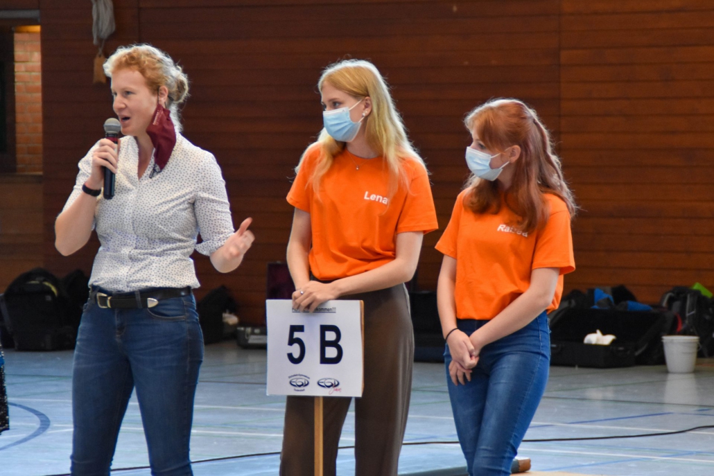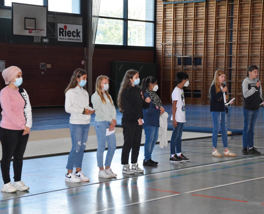 Dies waren die wichtigsten Fragen in den Köpfen der Schüler, als sie am 03.09.2021 die Sporthalle des Schulzentrums „Auf der Klappe“ betraten. Und die Antwort ließ teilweise auch gar nicht lange auf sich warten, da bereits am Eingang zur Tribüne Zettel ausgeteilt wurden, die den Kindern sowohl die Klassenzusammensetzung als auch die Klassenlehrerin verrieten.