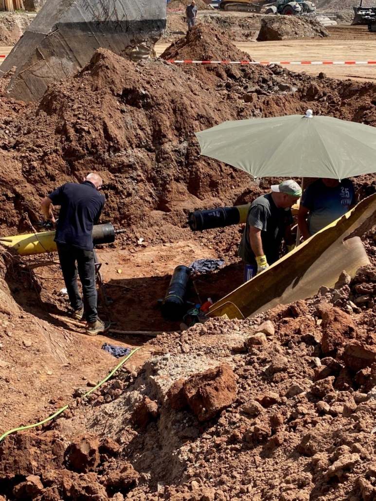 Im Rahmen der Bauarbeiten finden im Moment sehr viele Erdbauarbeiten statt. Bei den Arbeiten wurde die Gasleitung beschädigt, die zum Blockheizkraftwerk unter der Schule führt. Das austretende Gas entzündete sich. Um kein Risiko einzugehen, wurde das EGD evakuiert. Die hinzugezogene Polizei lobte die schnelle Evakuierung zu den neuen Sammelpunkten der Schule.