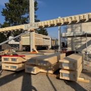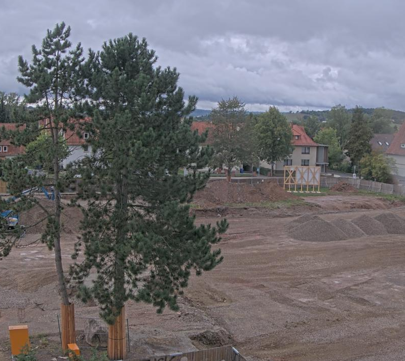 Die Baustelle wird im Moment weiter vorbereitet. In diesem Fall finden Verdichtungen des Untergrundes statt. Eine Maschine verpresst den ganzen Tag Kies in das Erdreich, das dadurch fester wird. So kann man bald mit der Gründung der Bodenplatte beginnen. Die Bauarbeiten finden in der Regel den ganzen Tag bis etwa 19.00 Uhr statt. Der Zeitplan ist eng.
