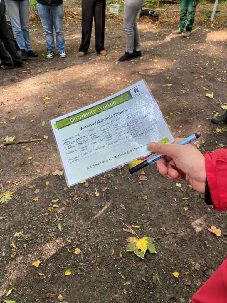 Los ging es mit einem Lehrpfad in der Nähe des Parks, auf dem wir wichtige Aspekte der Evolution entdeckt haben. Im Anschluss trafen wir Frau Köver, die pädagische Leiterin des Bärenpark Worbis, welche uns an diesem Tag begleitete. Nach ihrer kurzen Einführung zu den verschiedenen Evolutionsfaktoren konnten wir diese anschließend selbst durch Aktivitäten im Bärenpark nachvollziehen – Biologie mal ganz praktisch!