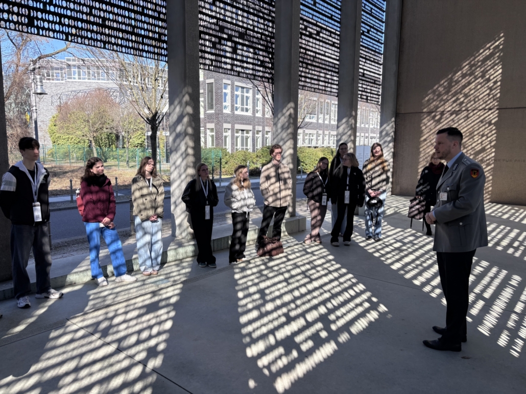 Am Freitagmorgen sind wir zum Bundesministerium der Verteidigung gefahren. Dieses ist aktuell unter Boris Pistorius für die Bundeswehr und den militärischen Schutz Deutschlands zuständig. Bei einem Seminar wurden uns Einblicke in die Außen- und Sicherheitspolitik sowie in die Wehrpflicht gegeben. Dabei wurde uns nahegelegt, dass das Ziel der Außenpolitik darin besteht, die Sicherheit Deutschlands zu stärken, Krisen zu verhindern und die Stabilität in anderen Regionen zu unterstützen. Dafür arbeitet Deutschland eng mit der NATO und der EU zusammen. In Bezug auf die viel diskutierte Wehrpflicht wurde uns gesagt, dass trotz des aktuellen Personalmangels das Ziel von 200.000 Wehrfähigen auch mit freiwillig Wehrdienst Leistenden erreicht werden könne.