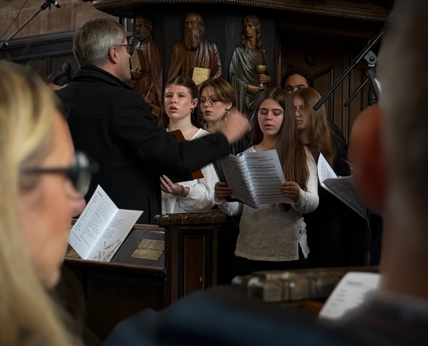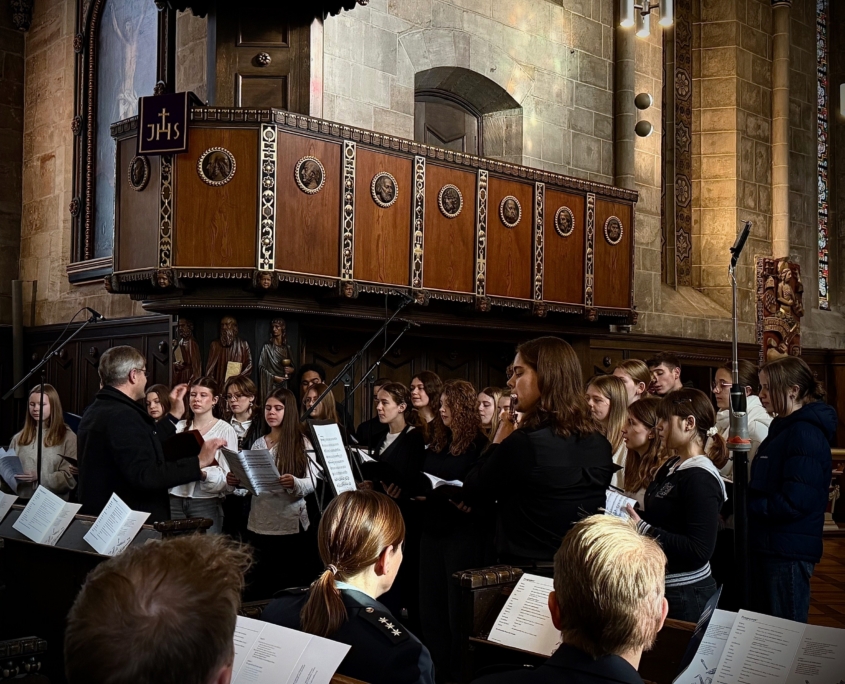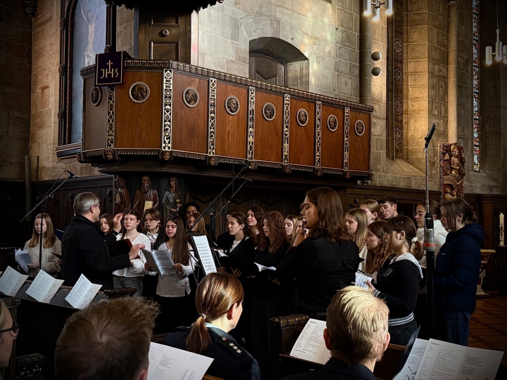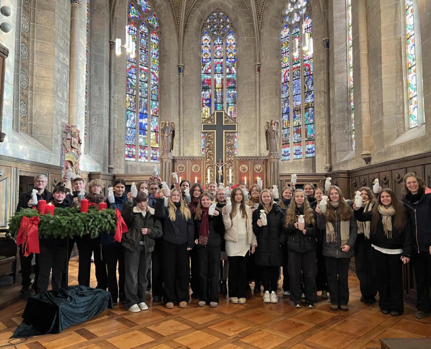 Auch wenn im Eichsfelder Tageblatt im November 2025 darüber spekuliert wird, ob die Baustelle stillgelegt ist, zeigen weitere Baumaßnahmen, dass dem nicht so ist. In der Tat gab es einige Woche Ruhe auf der Baustelle. Die Holzeinbauten werden erst 2026 eingebaut. Allerdings tut sich was: Es werden in großem Stil Betonstreben auf der gesamten Baustelle eingebaut. Ein Kran der Fa. Klostermeier stellt die Streben auf. Auch wenn aus dem Lehrerzimmer zu hören ist, dass dies die Kreuze für die neue Kapelle im Neubau seien, dem ist (leider) nicht so. Die Querstreben dienen der Verzahnung für die noch zu stellenden Holzelemente.